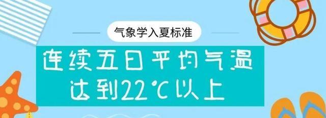 入夏的标准——按气候学的标准,当一个地方的日平均气温连续5天大于或等于22℃,则以其对应的第一个大于或等于22℃的日期作为夏季起始日。